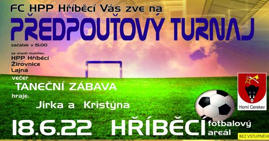FC HPP Hříběcí, za podpory města Horní Cerekev, zve všechny příznivce kopané na fotbalový turnaj a večerní zábavu.