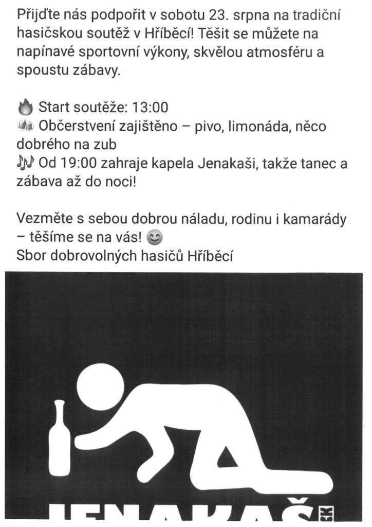 SDH HříběcíDatum poslední aktualizace: 8. 8. 2025 7:57