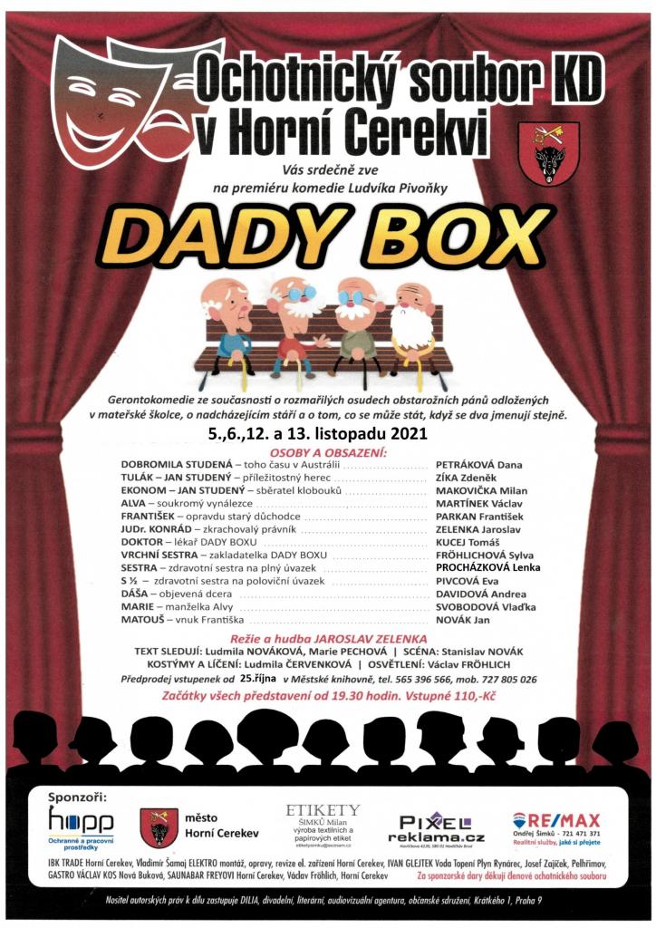 OCHOTNICKÝ SOUBOR KD V HORNÍ CEREKVI VÁS SRDEČNĚ ZVE NA KOMEDII DADY BOX