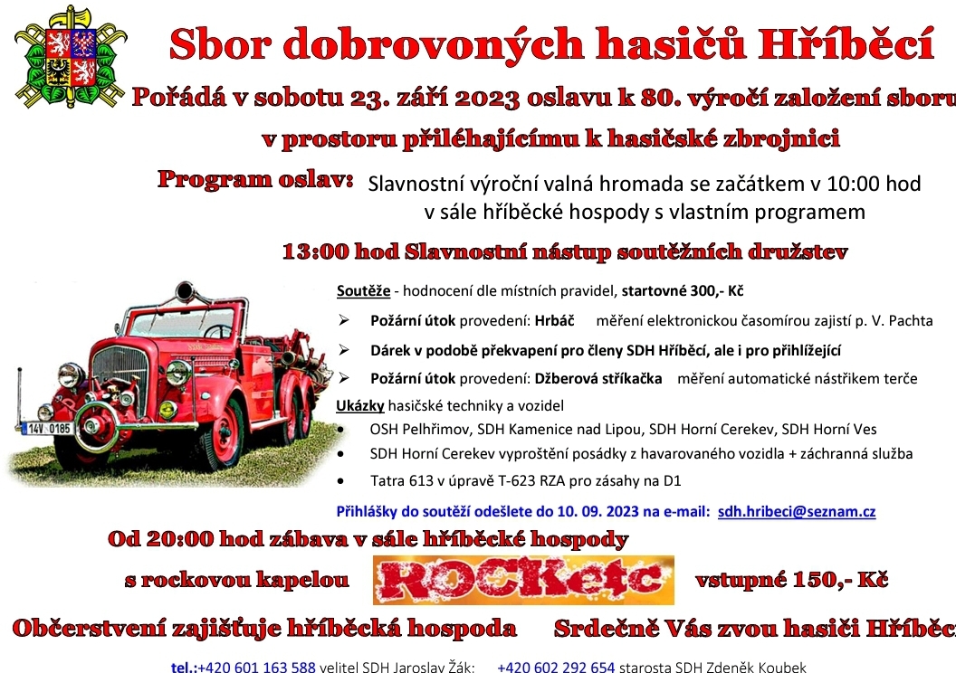 OSLAVA 80.VÝROČÍ ZALOŽENÍ SDH HŘÍBĚCÍ