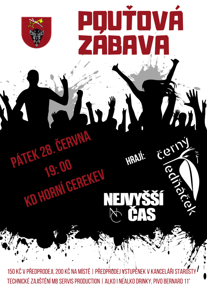 Přijměte pozvání do KD Horní Cerekev na pouťovou taneční zábavu s rockotékou.
