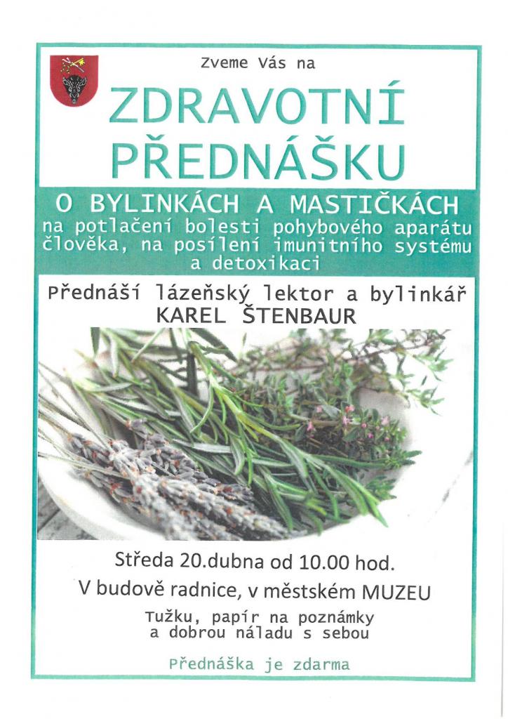PŘEDNÁŠKA O ZDRAVÍ, BYLINKÁCH A MASTIČKÁCH